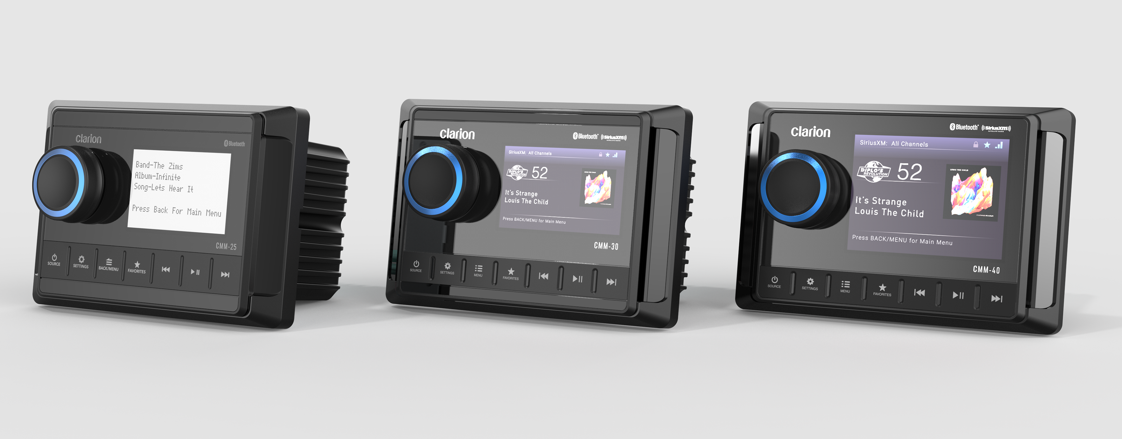Client Clarion, a JL Audio brand, was looking to develop a fresh and distinctive brand language. As a trusted brand in the marine audio space, Clarion holds a substantial presence spanning across both consumer and OEM boat manufacturing markets. The lineup of products encompasses a diverse range of audio devices such as speakers, remotes, tower enclosures, amplifiers, and source units. Our challenge was to create a unified product line that harmonizes seamlessly with the modern aesthetics of present-day water craft, all the while retaining a timeless aesthetic that resonates with both longstanding customers and newcomers alike.